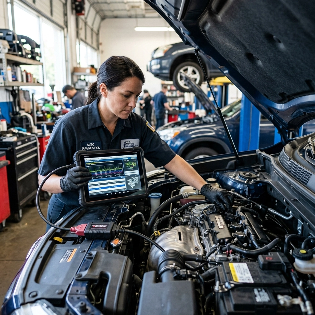 • Fluid checks and top-offs – Includes coolant, brake fluid, power steering fluid, and transmission fluid.
